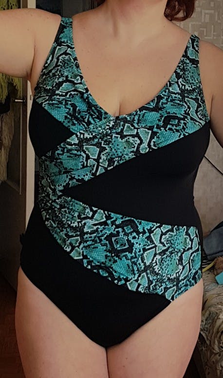 Swimsuit is not bad, just did not like the strings from behind the back, uncomfortable (with the purchase I did not see them) .On chest girth 104 size 50 I bolshevat (chest) .Sam material is thin, where the green paste to dvoynoy.Hotelos stouter tissue.